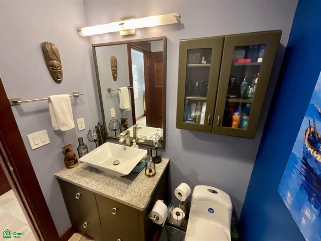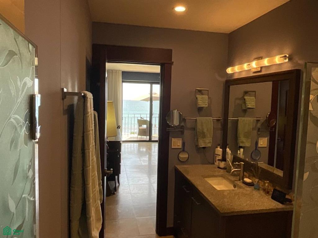 Both the living-room and bedroom offer stunning ocean views, with each own private balcony. The bedroom has a private en-suite bathroom with views of the ocean. The master-suite includes a walk-in closet, vanity, and a separate glass-enclosed shower—a true retreat. A half-bathroom is situated at the end of the living-room, very spacious.