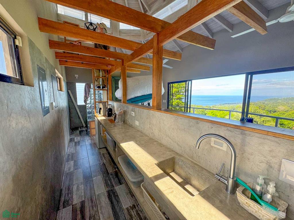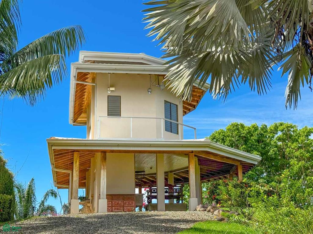 This elevated end-of-road home in Cinco Ventanas Phase 8, Ojochal, is surrounded by protected rainforest and offers spectacular ocean sunset, jungle, and mountain views. Set at 190 meters above sea level, the property enjoys cooler temperatures, constant breezes, and guaranteed privacy.