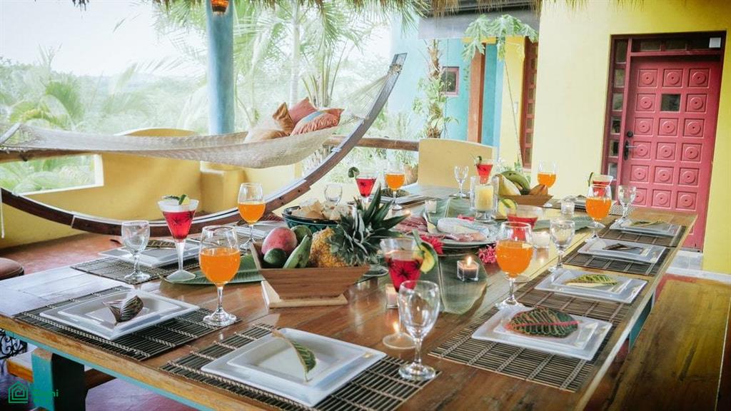 Casa Oceana. It is a house in the style of Tuscany. It is really nice with views of the ocean, mountains and rainforest from all sides. It has rooms with a lot of light nice furniture, a big pool, an area for eating outside and great views from the top. It even has a soccer field at the bottom of the property. It is located on a ranch with horses and security all the time. It is a place away from crowded tourist areas but still close to the beach and all the local things to do. There is a manager who can help you with anything you need. The house is beautiful, inside and out. Just being here is like being on vacation!