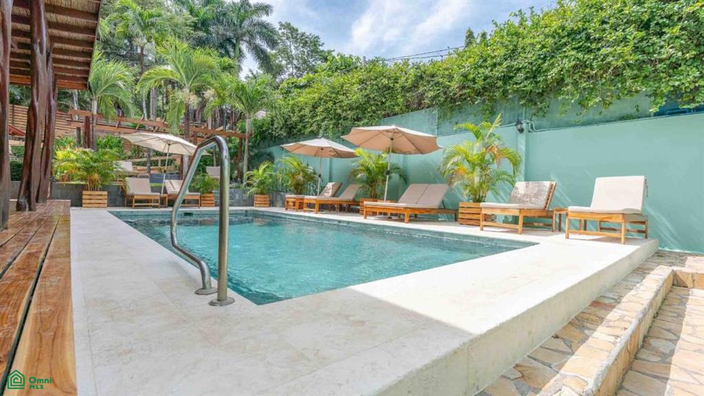 The accommodations consist of 13 rooms, 4 with king-sized beds, 4 rooms with 2 queen-sized beds as well as 5 cute bungalows sleeping two comfortably. The hotel is surrounded by lush tropical gardens and has a nice-sized swimming pool with plenty of little nooks to enjoy the tranquil settings and unwind.