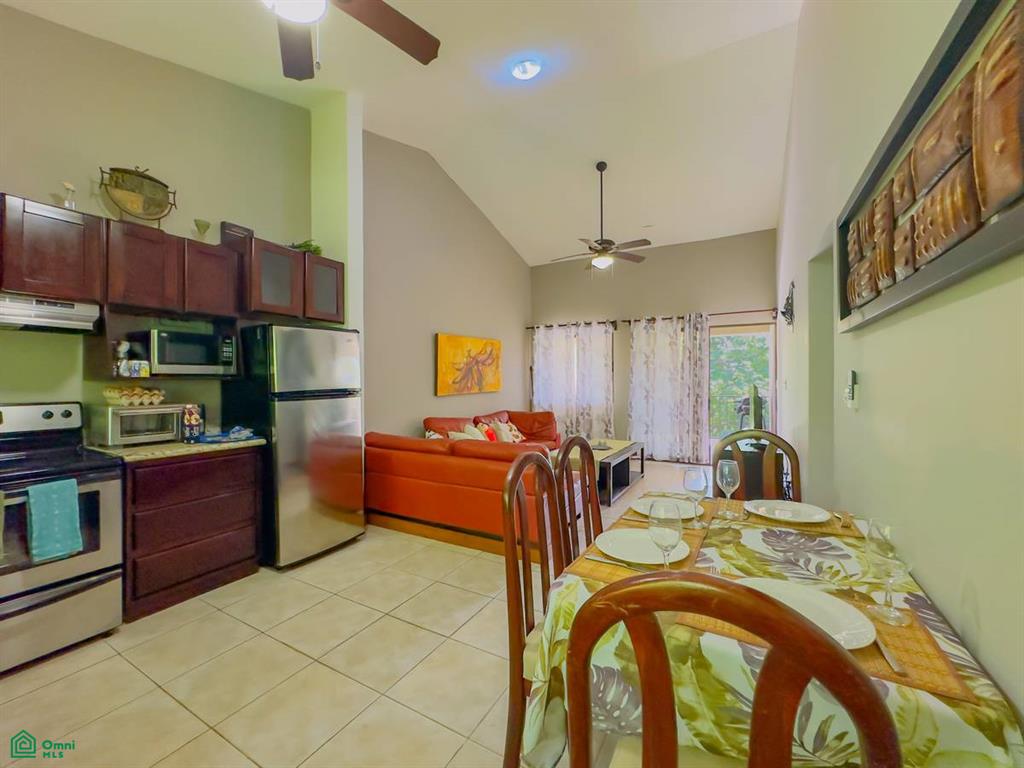 Enjoy comfort and privacy in this spacious 1,054sq.ft. (98m2) 2-bedroom, 2-bath top-floor condo surrounded by mountain and treetop views. The large, covered balcony is perfect for relaxing, dining outdoors, or enjoying the tropical breeze. Inside, vaulted ceilings and abundant natural light create an inviting, open feel. The condo has been owner-occupied and well maintained, featuring stainless-steel appliances, ceiling fans, air conditioning throughout, and its own washer and dryer.