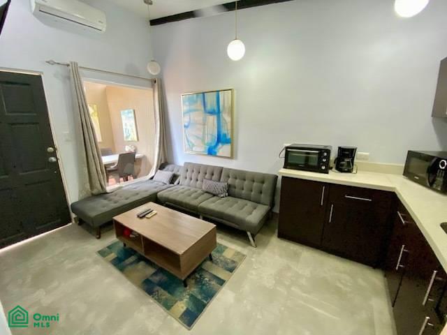 This two bedrooms two full bathrooms convenient condo is located downtown Jaco just 300 meters away from the beach in a gated complex called Tropical with 24/7 security, common pool and rancho area, walking distance from restaurants, shop and supermarkets. This unit is sold fully furnished and the perfect investment for someone who plans to be down here occasionally and rent the rest of the time.