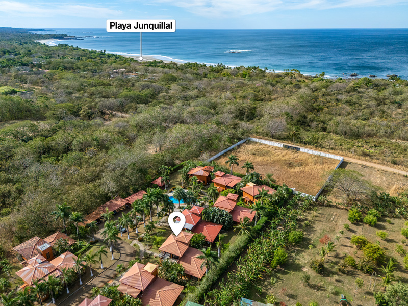 The location remains one of the key advantages. Playa Blanca—arguably one of the most pristine and least trafficked white-sand beaches in the region—is a short walk away. The paved road into Junquillal ensures consistent access, while Tamarindo’s full service hub (restaurants, shopping, medical, and nightlife) sits approximately 30 minutes to the north. Guanacaste International Airport (LIR) is reachable in about 1 hour and 15 minutes.