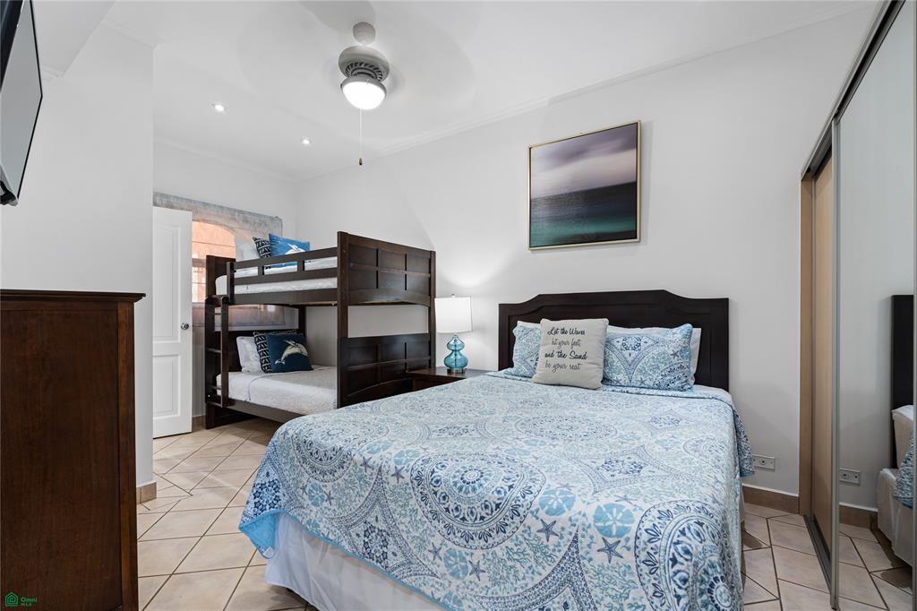 The second bedroom sleeps 4 with twin bunks and queen-size beds and has Jack-and-Jill access to the second full bathroom.
