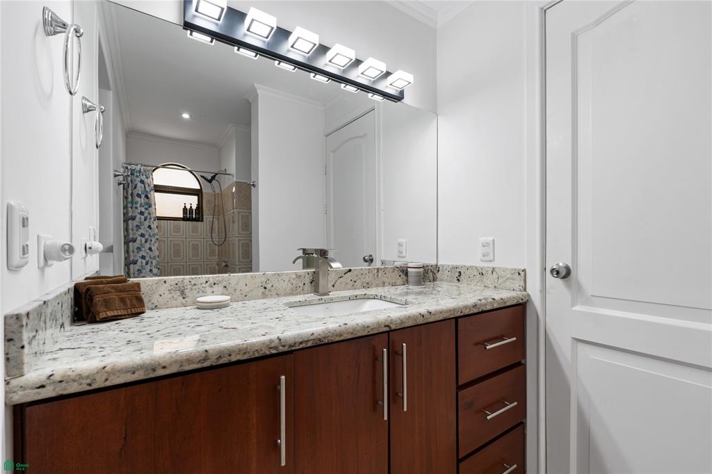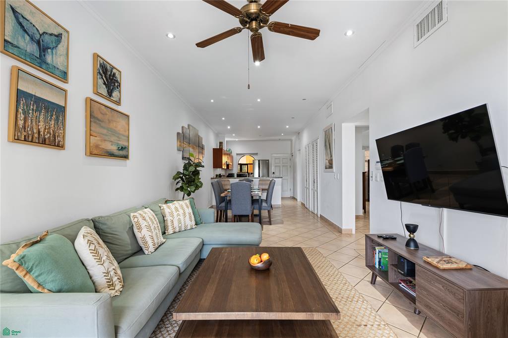 As you enter, you'll be greeted with a generous-sized kitchen with stainless steel appliances and granite countertops. It is fully stocked and turnkey.