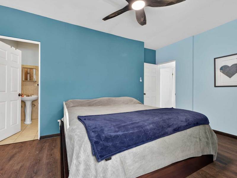 Upstairs, both bedrooms offer en-suite bathrooms and ample space. The primary suite includes a walk-in closet and access to a private balcony, providing a comfortable and private retreat.