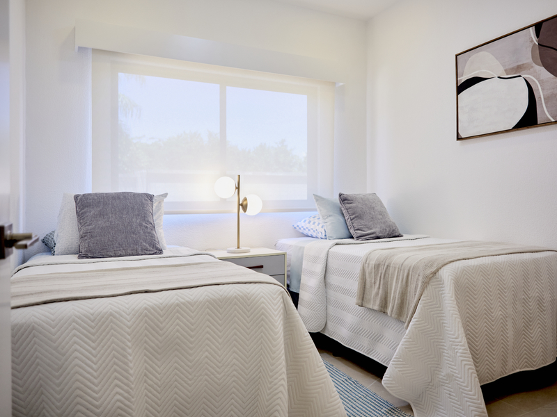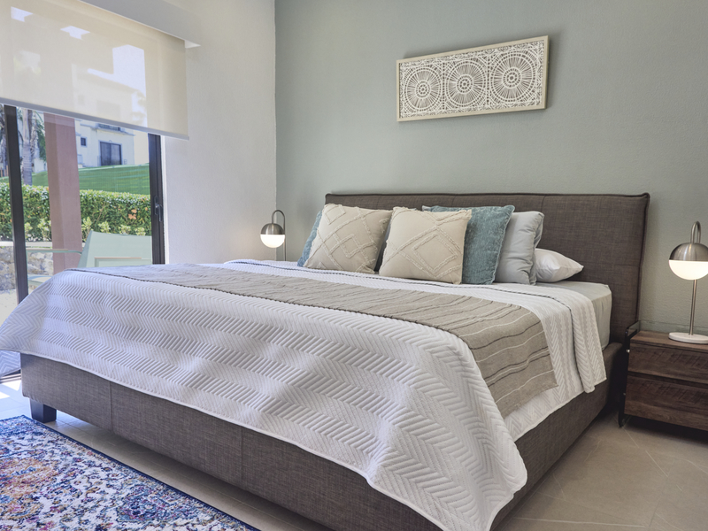 There will be a total of three towers built with each tower consisting of 3 floors with 4 units to each floor – totaling 12 units per building. The first phase/tower was completed in April 2023. Delivery of the building C is planned at the latest for first quarter of 2026. Each unit has its own private balcony. Views vary depending on the level of the unit. Top level has breathtaking views of the mountains and surrounding land while mid and floor levels will have views of the gardens and pool area. Interior design packages will be offered to make the unit – turnkey – ready to move in or use as a rental property.