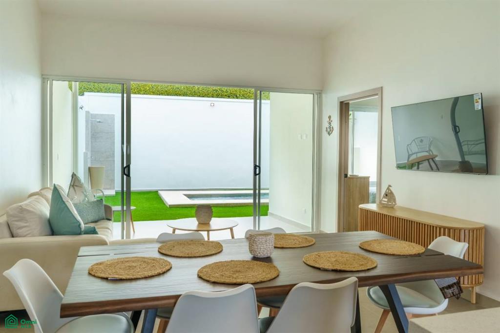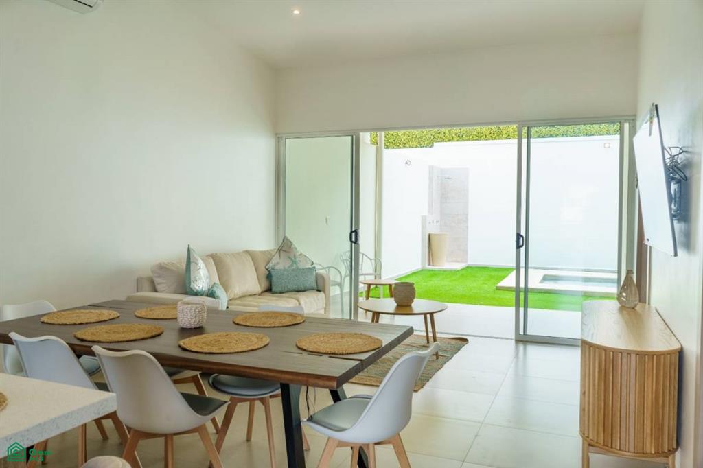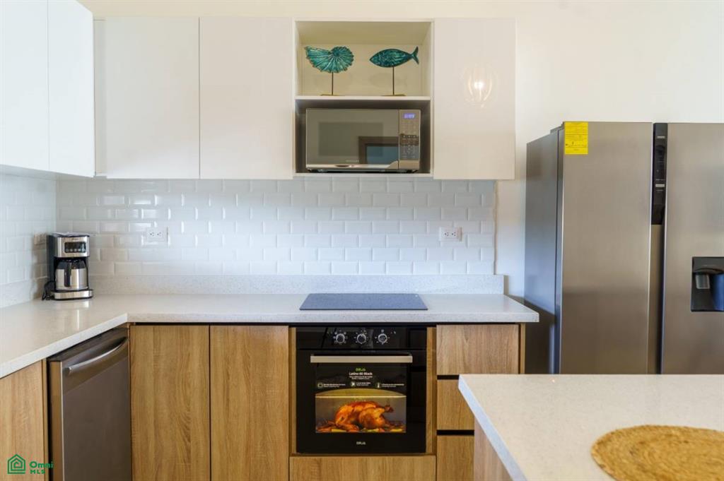 The living room and kitchen are integrated into an open concept that favors natural lighting and ventilation. The kitchen, located at the main entrance of the home, will be equipped with quartz countertops and high-quality melamine cabinets, as well as including all appliances, ready to move in or rent.