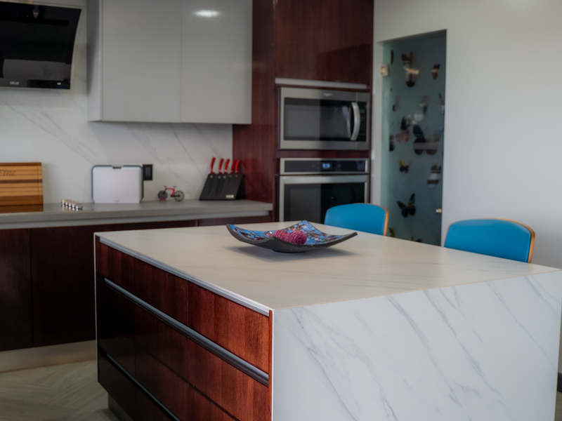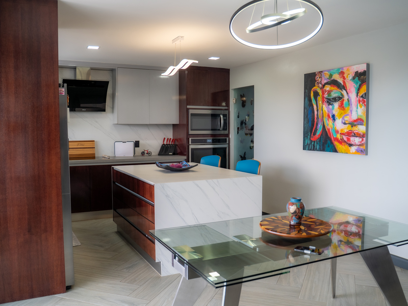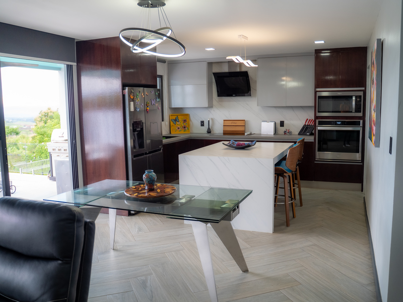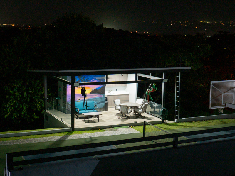 With 3.5 elegant bathrooms featuring luxurious fixtures and finishes, and a chef’s dream kitchen equipped with high-end appliances, quartz countertops, and custom cabinetry, Casa Altum embodies refined living. The kitchen seamlessly integrates with the open-concept living and dining areas, designed to encourage connection and effortless entertaining. Large sliding windows create a harmonious transition to the spectacular outdoor living spaces.