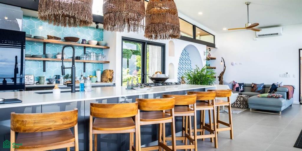 An additional rooftop observation deck offers the perfect spot for wildlife watching, sunset cocktails, or stargazing. The surrounding gardens, landscaped with fruit trees and tropical ornamentals, enhance the property’s natural beauty and sense of serenity.