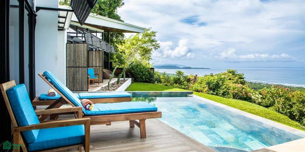 From its elevated position, Hilltop Oasis with Panoramic Views captures unforgettable 180-degree ocean views, with sunsets that paint the horizon and the sound of the Pacific as a constant backdrop. Surrounded by jungle and wildlife, it’s not uncommon to see monkeys, scarlet macaws, and hummingbirds visiting daily, making this property a true natural sanctuary.