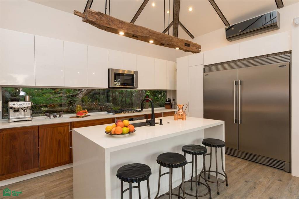 Kitchen: Equipped with quartz countertops, a central island, and a professional-grade refrigerator/freezer.