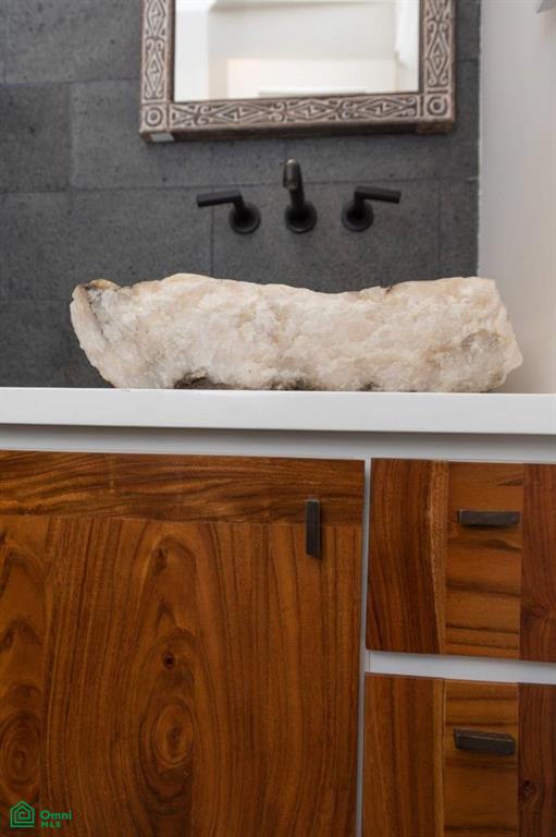 Master Suite: Opens to the pool with imported Sukabumi tiles, featuring an opulent outdoor bathroom with a rain shower and natural stone bathtub.