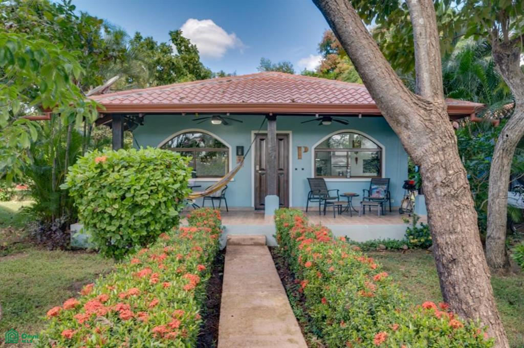 Discover this well-designed, renovated villa in the heart of Playa Potrero’s Gated Villaggio 2 community—a comfortable, charming retreat surrounded by peaceful scenery just minutes from the beach. The community provides 24-hour security including a guarded gate with ample parking. Step inside to an inviting cottage with all new flooring, doors, water descaler, vaulted ceilings, abundant natural light, and thoughtfully selected furnishings that create a relaxed coastal feel. The kitchen has been updated with ample counter space, contemporary two-tone cabinetry, and brand-new hardware. The home offers 2 well-appointed bedrooms, each with vaulted ceilings, new A/C units, ceiling fans, custom closets, and king-sized beds. The spacious bathroom features dual sinks, bright finishes, and a fresh, modern look. Laundry is no chore with a combined washer/dryer unit. The property has a generous outdoor seating area surrounded by a private garden—perfect for morning coffee, grilling, or planting your own tropical greenery. A sturdy, waterproof, outdoor storage shed was recently added for maximum organizing or can be used to store owners’ belongings. This villa is offered fully furnished (except for some owner belongings that do not convey with the property – inventory to be provided) and is move-in ready, with access to the Villaggio community’s large, shared swimming pool. From the front door, it’s just a 5-minute drive or a 10-minute walk to Playa Potrero’s sandy shoreline, grocery stores, restaurants, and the new Flamingo Marina. This property offers the advantage of immediate rental income paired with flexible owner enjoyment. The current owners love to travel but would like to continue to occupy the unit as tenants. They are happy to plan their trips around the new owner’s desire to use the villa and will vacate for owner stays—making this an ideal option for buyers seeking return on investment and personal use.