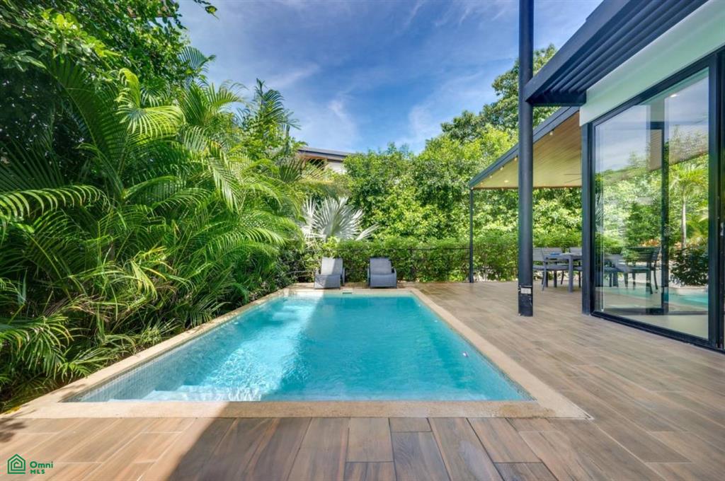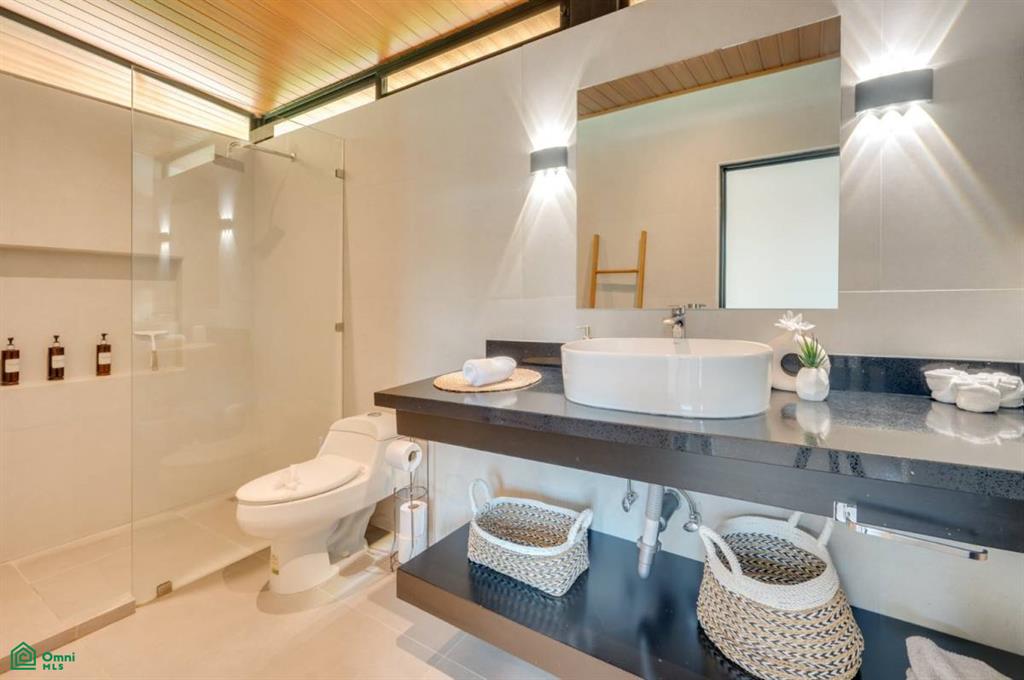 This recently built villa sits in an exclusive gated community designed by a renowned local architect. Surrounded by a lush tropical garden, it features a swimming pool and a large semi-covered terrace that blends indoor and outdoor living beautifully.