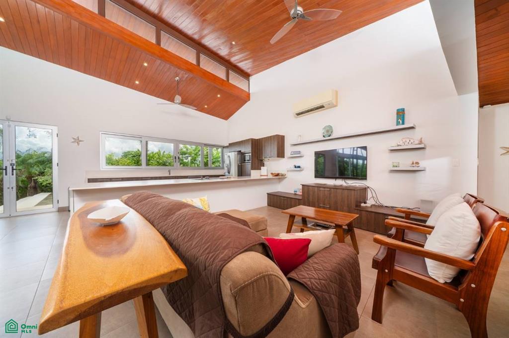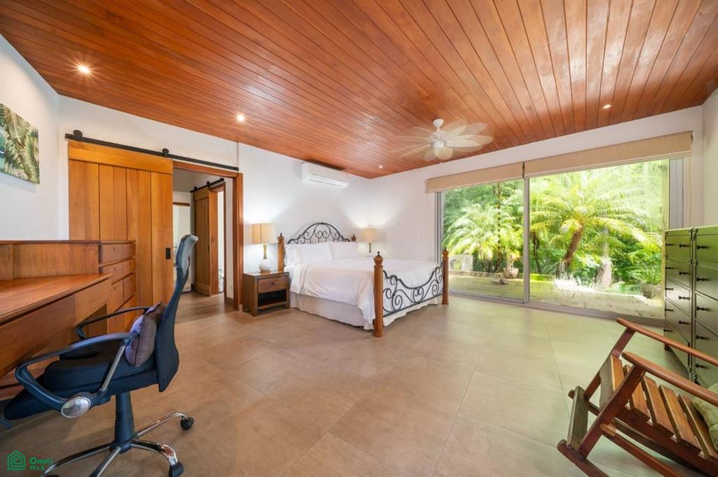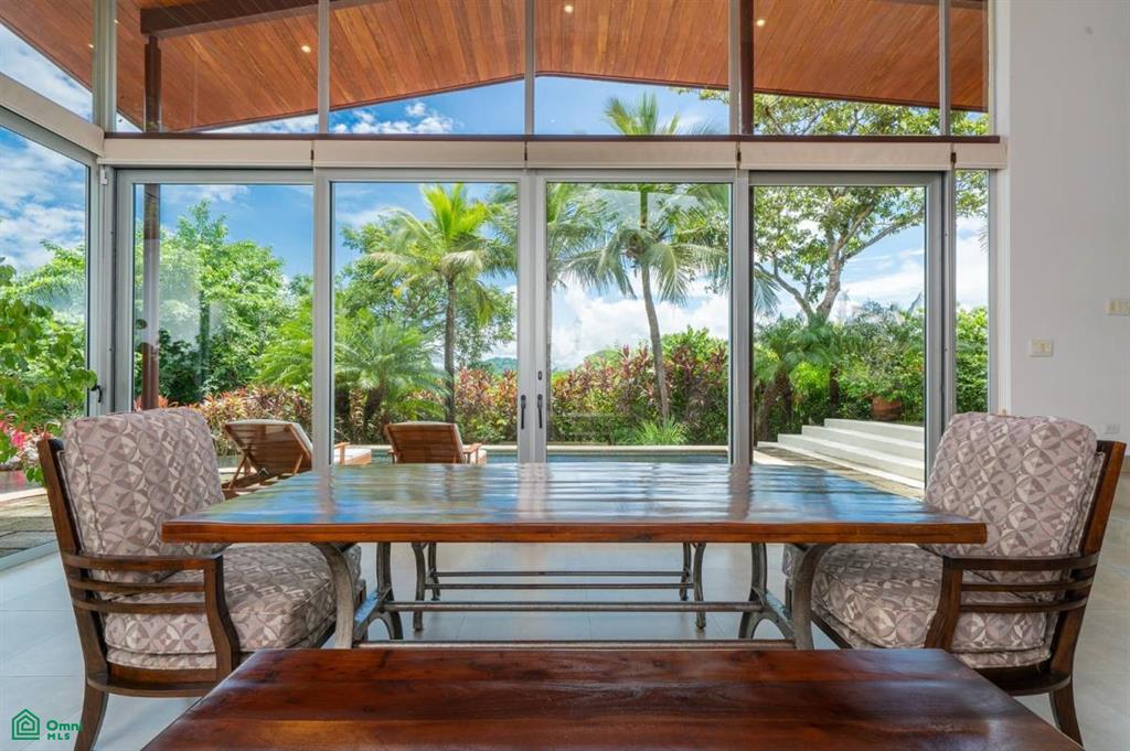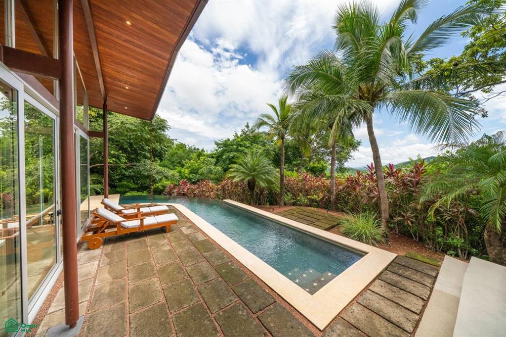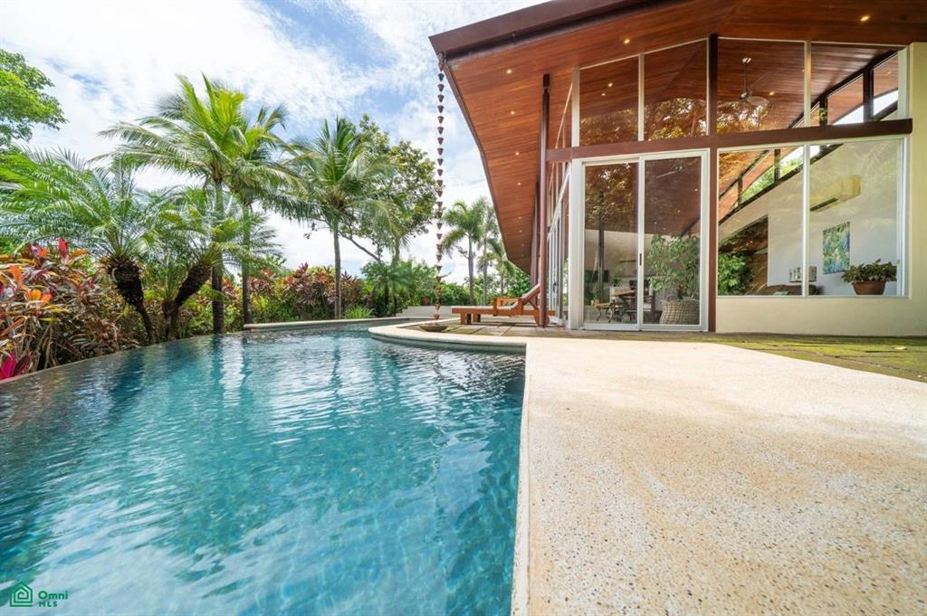 Discover this stunning modern villa nestled in an exclusive and peaceful residential community. Situated on a spacious 5,705 m² lot, the property offers panoramic views of the valley and the surrounding rainforest. Designed with elegance and tropical charm, it features two spacious master bedrooms with ensuite bathrooms, a bright open-concept living area, and a unique boomerang-shaped pool that blends into the natural landscape.