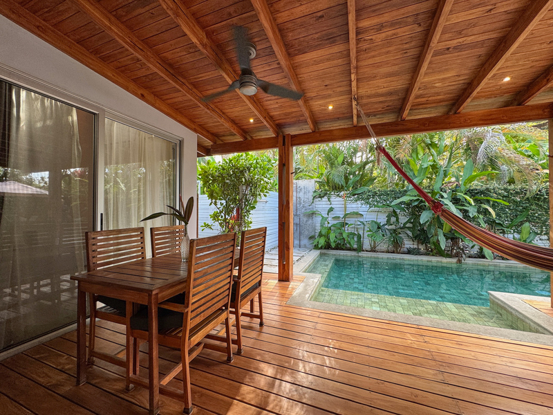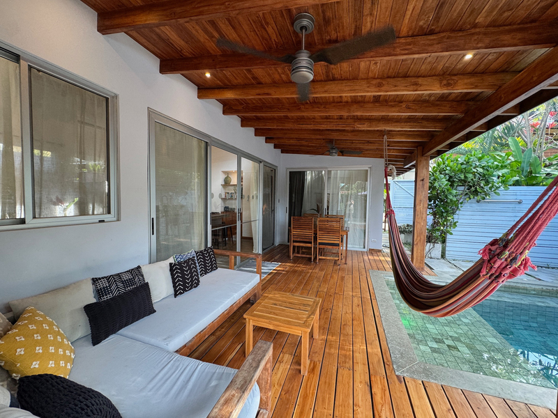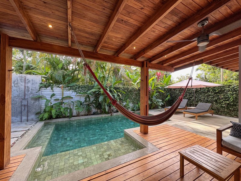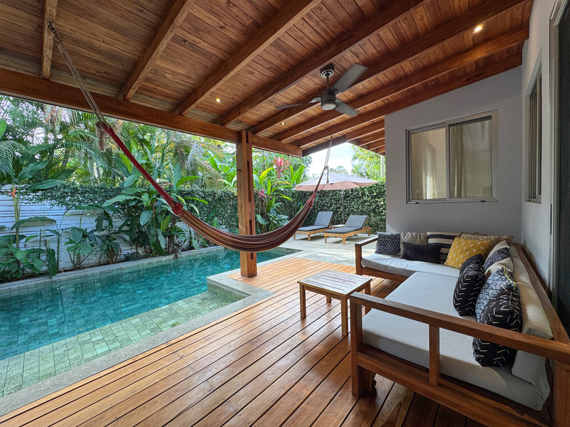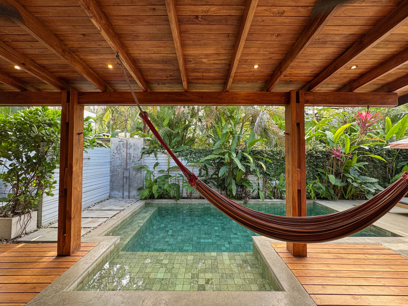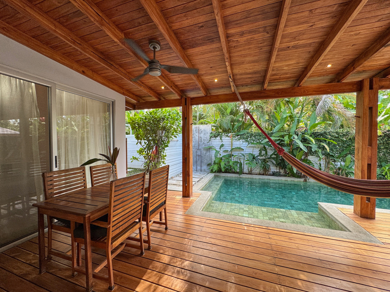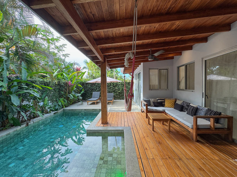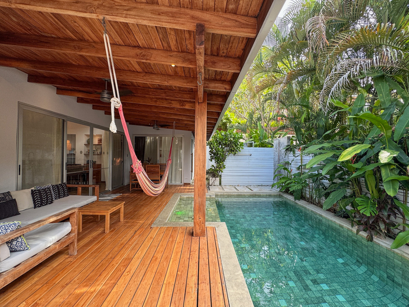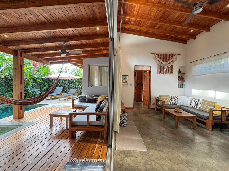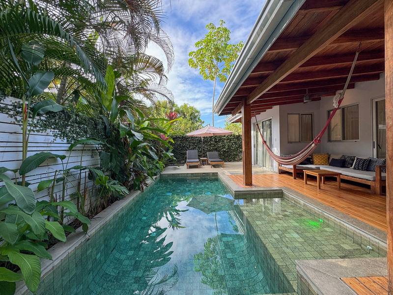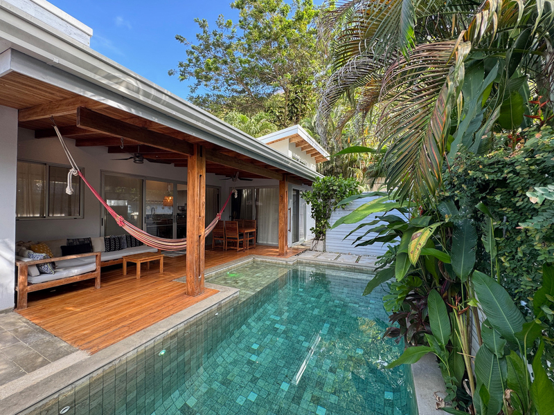 • 400 m² lot • 2 bedrooms, 2 bathrooms • Private swimming pool • Covered outdoor living area • Residential zoning • Covered parking • AyA public water • Electricity and fiber optic internet • Walking distance to beach and restaurants