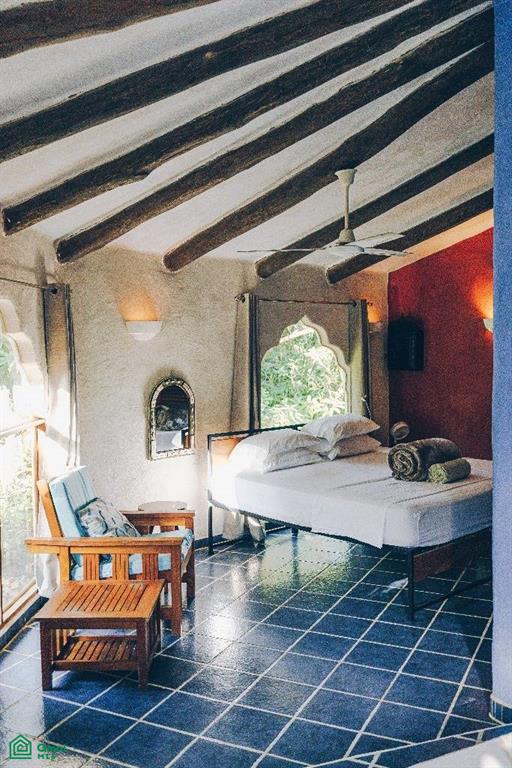 A signature open-air pavilion overlooks the jungle and serves as an ideal setting for yoga, ceremonies, workshops, or corporate wellness programs. Near the entrance, a dedicated social and operational hub includes a commercial kitchen, covered dining areas, lounge spaces, private staff quarters, laundry facilities, storage, reception, and ample parking—ensuring smooth daily operations.