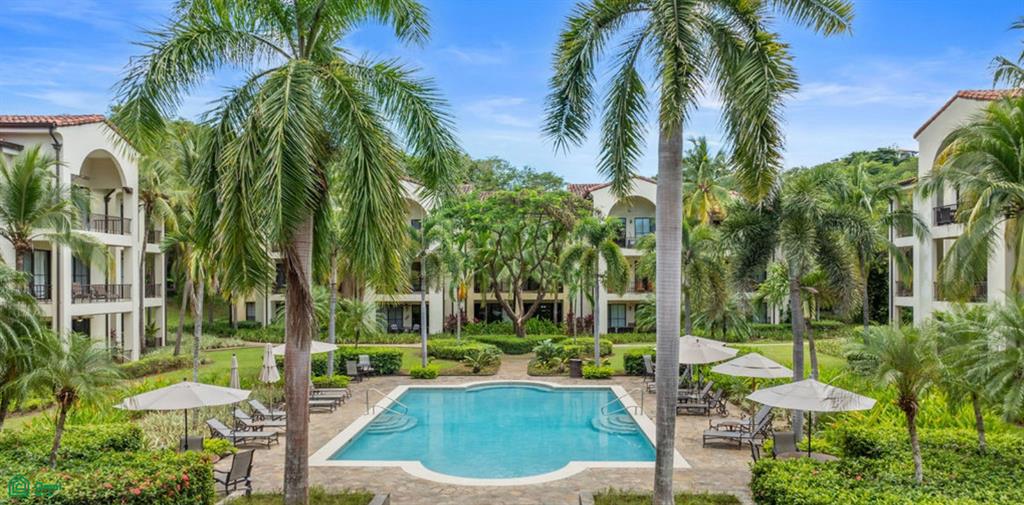 Turn-key second floor three-bedroom, two-full bathroom condo with a spacious layout, private outdoor space, and beautiful mountain and pool views, located in one of Costa Rica’s most sought-after gated communities.