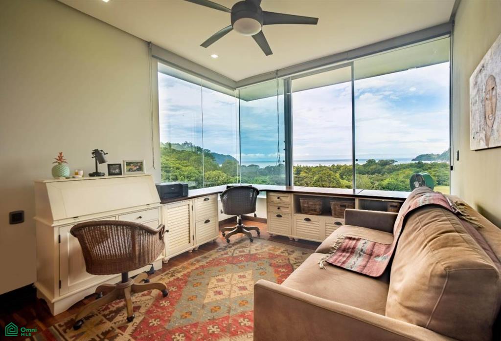 The home features 3 bedrooms and 2 full bathrooms, with solid construction and high end finishes, including marble floors and quartz countertops. Its open concept design harmoniously integrates the living room, dining area, and gourmet kitchen, which is equipped with stainless steel appliances. Large windows allow natural light to flood the space and provide panoramic views of the lush tropical surroundings and the majestic Pacific Ocean. The meticulously landscaped exteriors allow for customization, with the option to add a private pool or BBQ area.