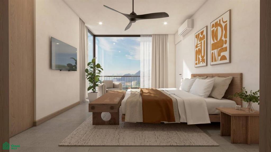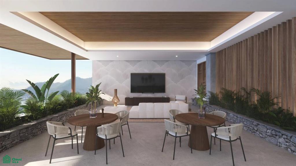 The condo site is situated at the end of the road, tucked along the hillside where the first level of the building will host the private amenities for the condo owners and guests, including an infinity edge pool, gym, coworking space, massage rooms, BBQ, and lobby area. The condos will start on the second floor, and every condo will have an ocean view. This particular residence on the first floor of condos (2nd of the building) offers a 3 bedroom layout, with 2 and a half baths, with the living, dining, and kitchen areas sharing an open floor plan that connects with the spacious terrace.