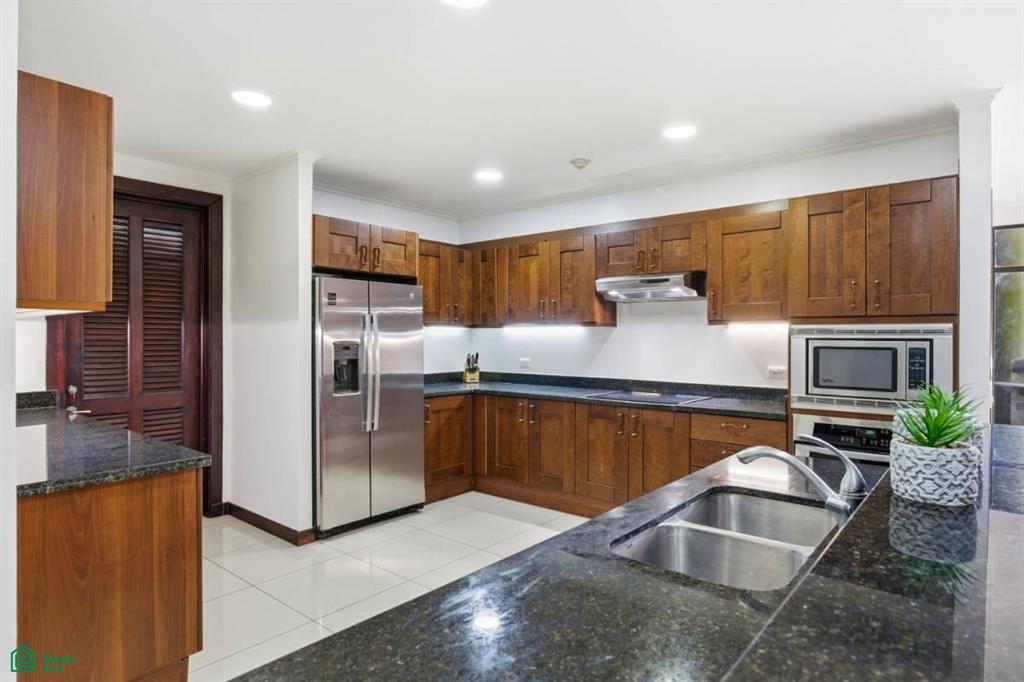 Boasting 2,678 square feet, this fully furnished three-bedroom, three-and-a-half-bathroom condo features a spacious deck with sun shades, BBQ and ceiling fans for your comfort. Each bedroom includes an ensuite bathroom, with the master suite featuring a relaxing jetted tub. The expansive living room flows seamlessly into a modern kitchen fitted with American-style stainless-steel appliances and granite countertops, while the dining area showcases a large dinning table, perfect for hosting family gatherings.