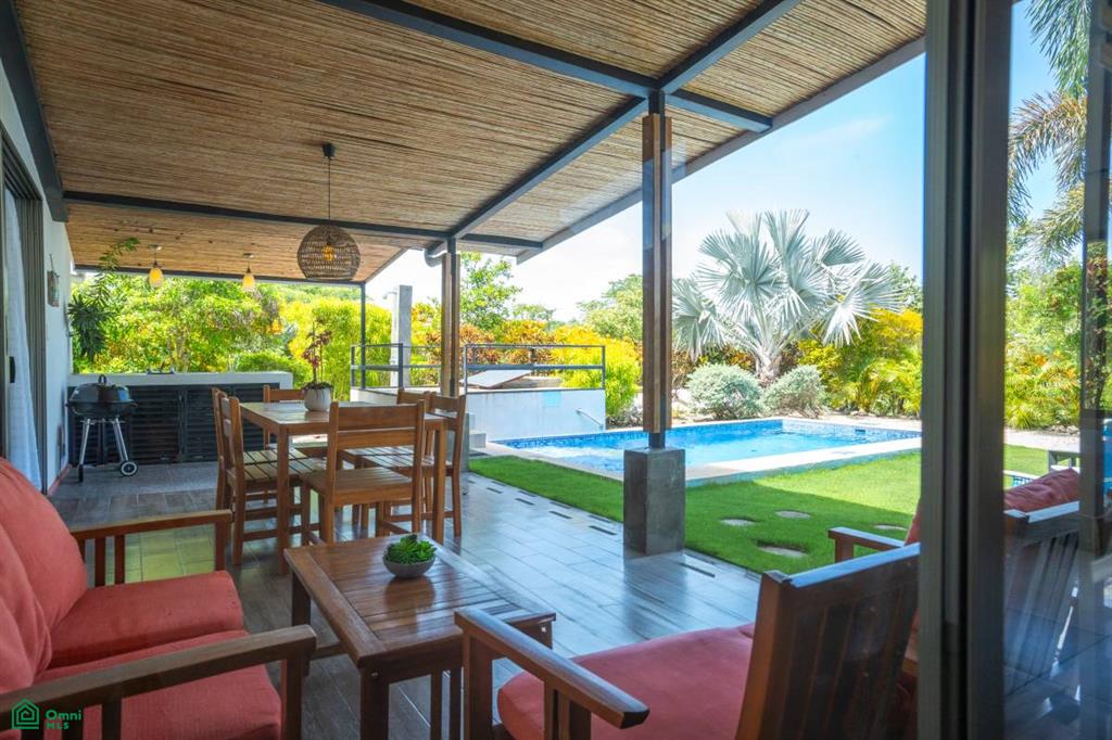 Welcome to Casa Bella, a modern, fully furnished 3-bedroom, 2-bath home located in the exclusive gated community of Lomas del Sol in Marbella, Guanacaste. This single-level residence offers a seamless indoor-outdoor lifestyle with an open-concept kitchen and living space that flows onto a spacious covered patio and private pool—perfect for enjoying sunset views and entertaining.