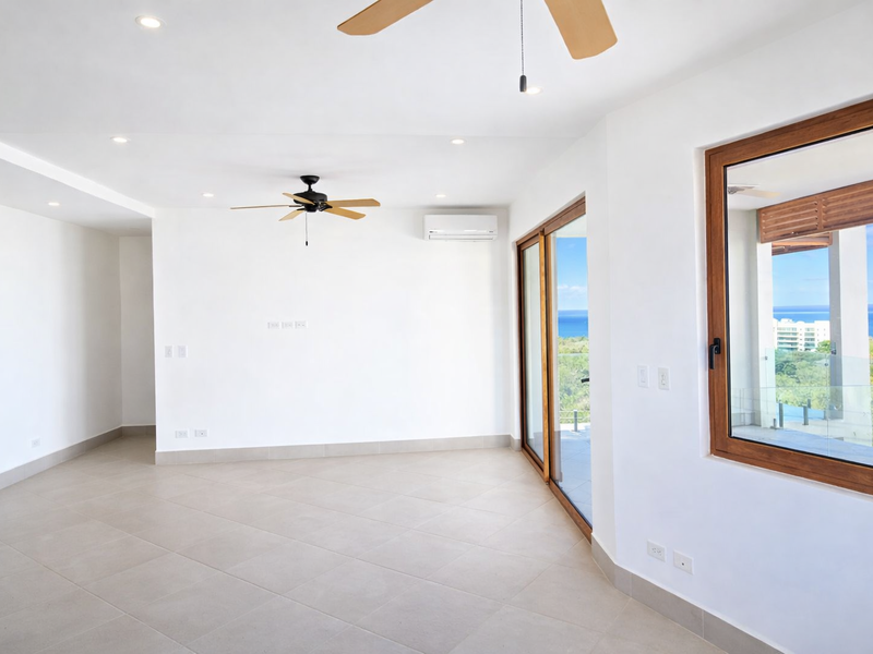 Puesta del Sol Unit #6 features three spacious bedrooms, three and a half bathrooms, and approximately 2,185 square feet of thoughtfully designed living space. The open-concept layout flows effortlessly onto a generous balcony, creating a seamless indoor-outdoor living experience ideal for entertaining or relaxing in the tropical breeze. Soaring ceilings and expansive glass doors fill the home with natural light while framing the stunning coastal scenery.