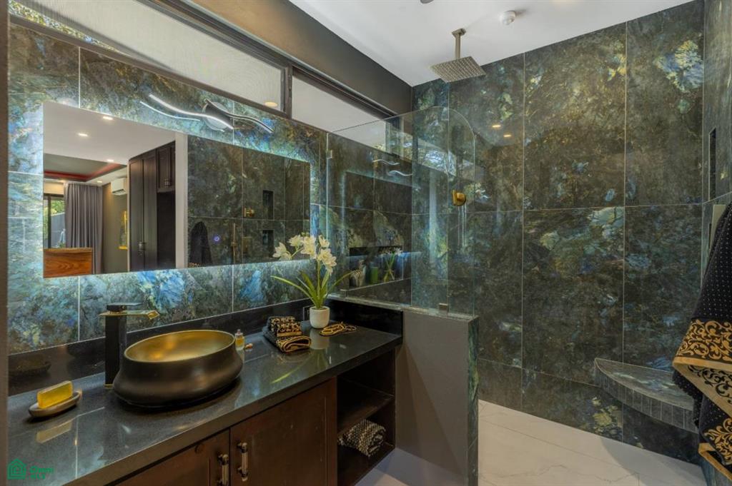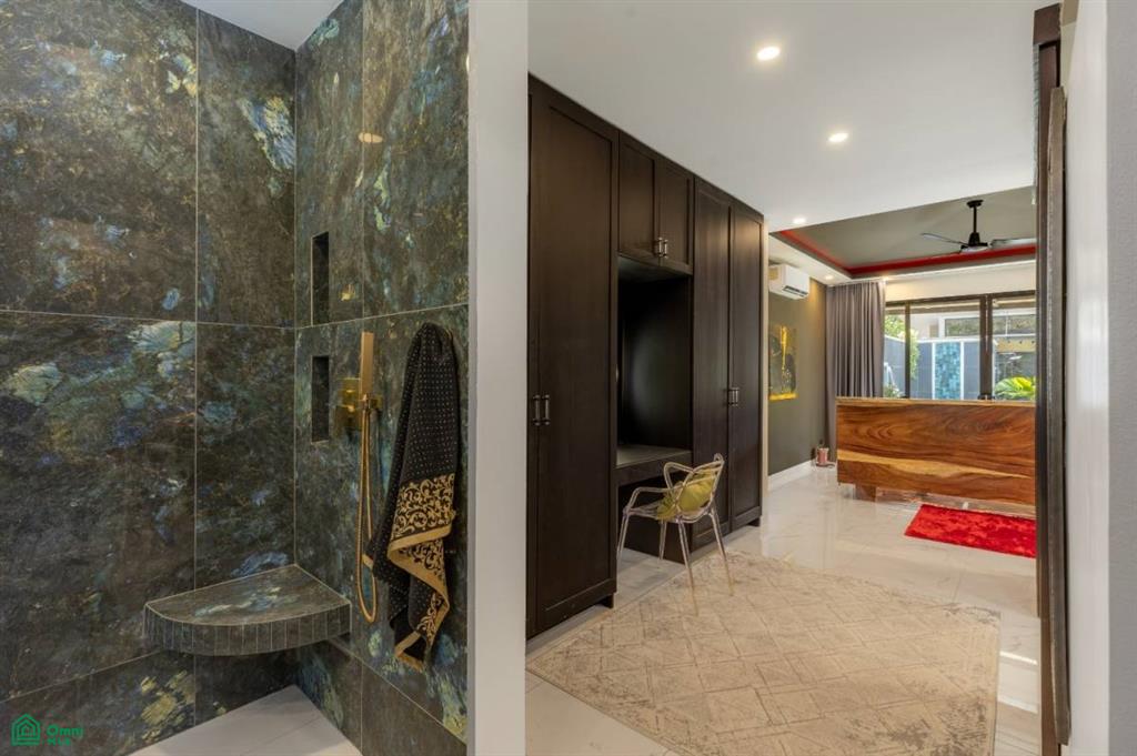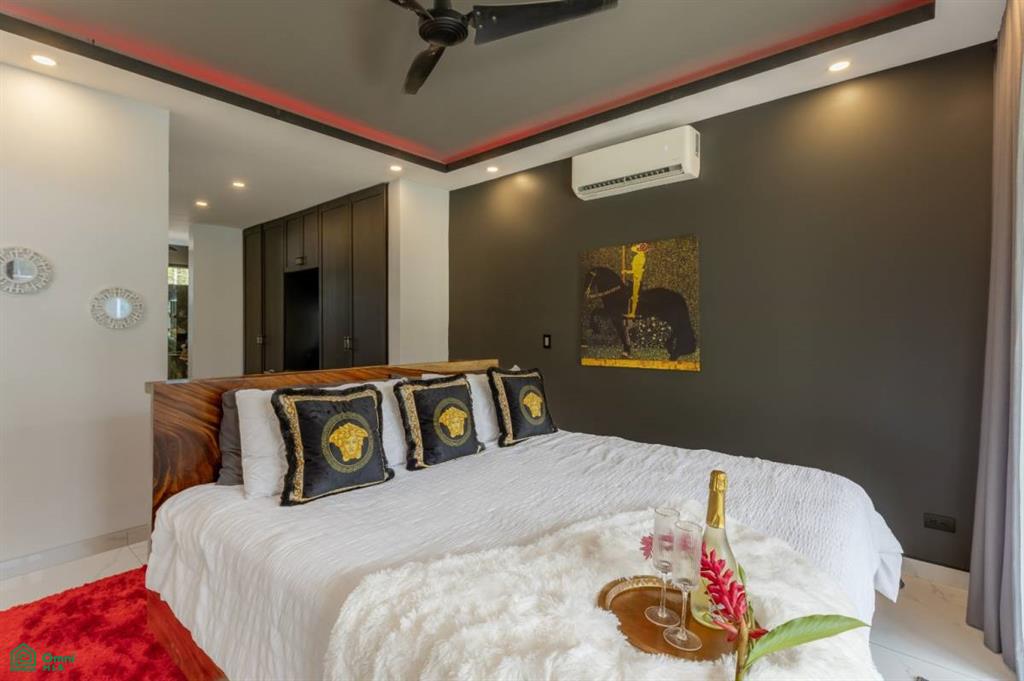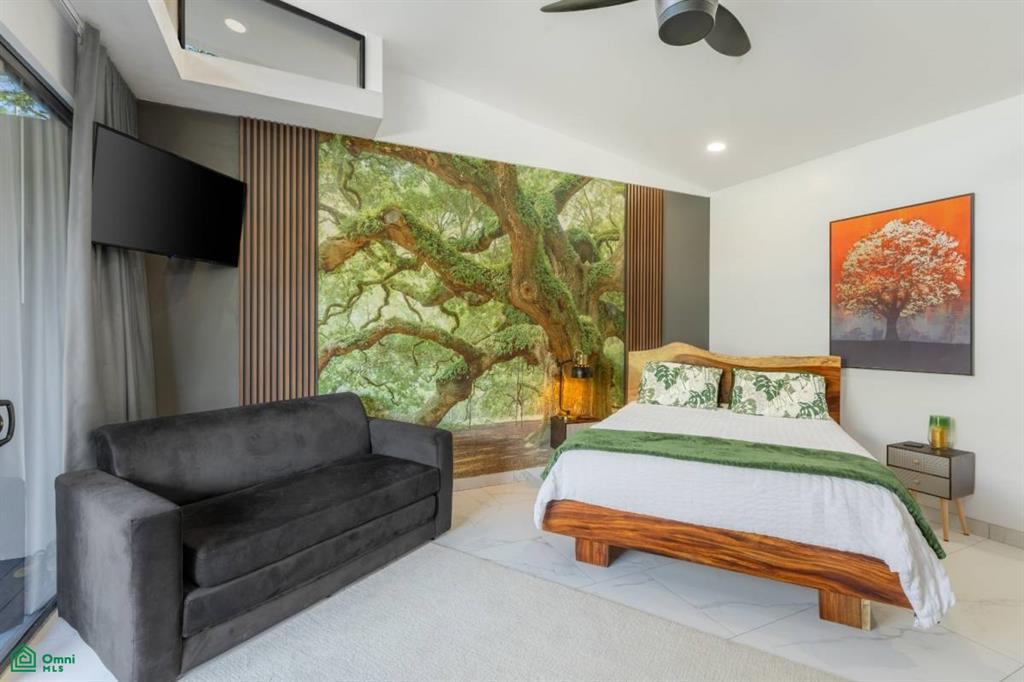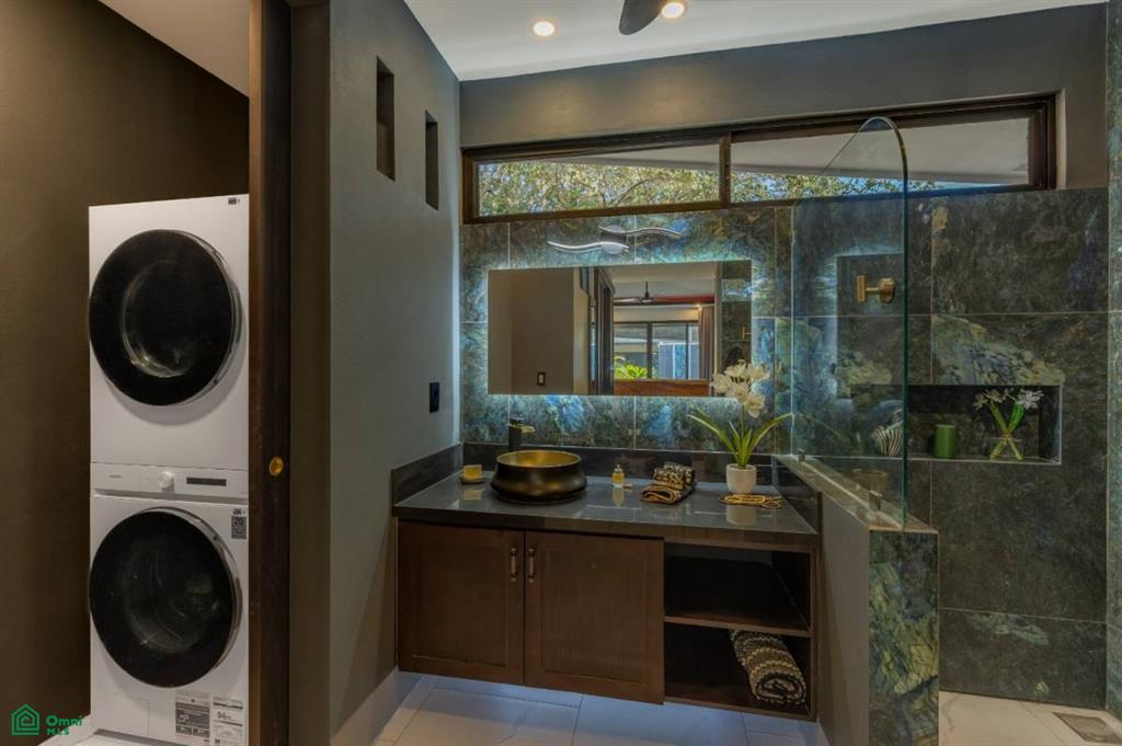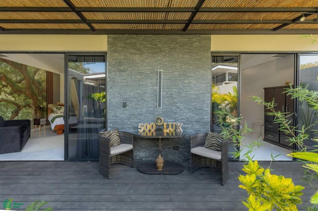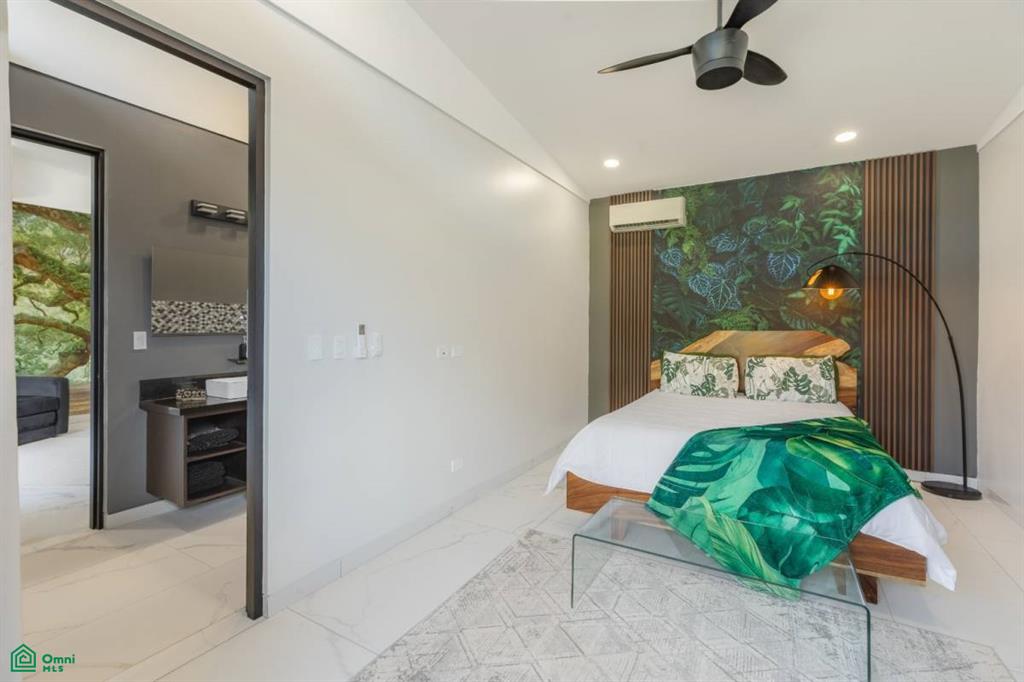 The main home features a spacious primary suite, designed for both comfort and sophistication. Furnished with custom-crafted Costa Rican woodwork, it includes a stunning Guanacaste wood king bed, custom-built cabinetry, and a