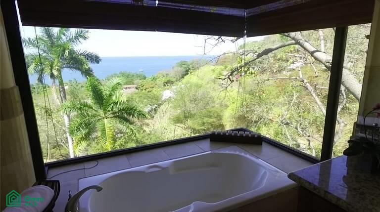 Located in a gated community 20 minutes from the Guanacaste International Airport, this home sits on the first hill overlooking Playas del Coco Beach. The floor plan maximizes natural light and encourages an indoor/outdoor lifestyle with a wrap-around balcony, oversized windows, sliding doors, a kitchen balcony, a dedicated grilling area, and a hot tub. The home boasts solid hardwood exotic teak floors, central air conditioning, a lighted waterfall feature, and ensuite bathrooms in all bedrooms. Practical details such as a dishwasher, parking for six, an outdoor rinse area for your scuba or fishing equipment, and covered parking to charge your electric golf cart allow comfortable living. Enjoy the conveniences of living in an amenity-rich ex-pat community with restaurants, doctor's offices, and international stores such as Crate & Barrel within driving distance.