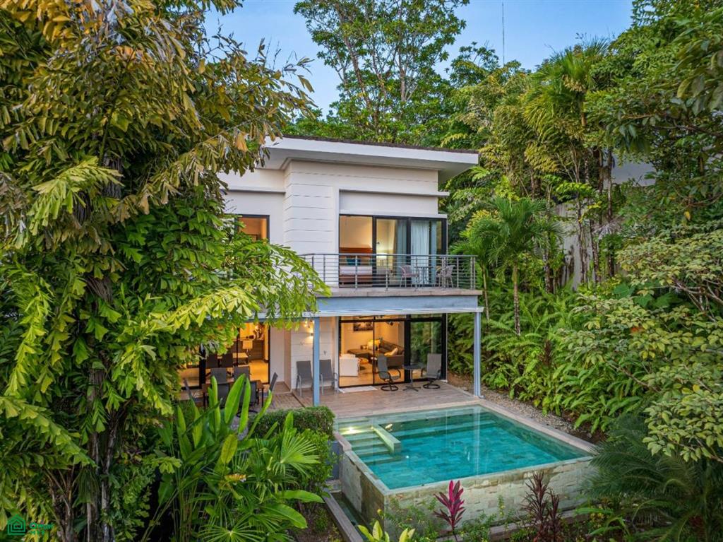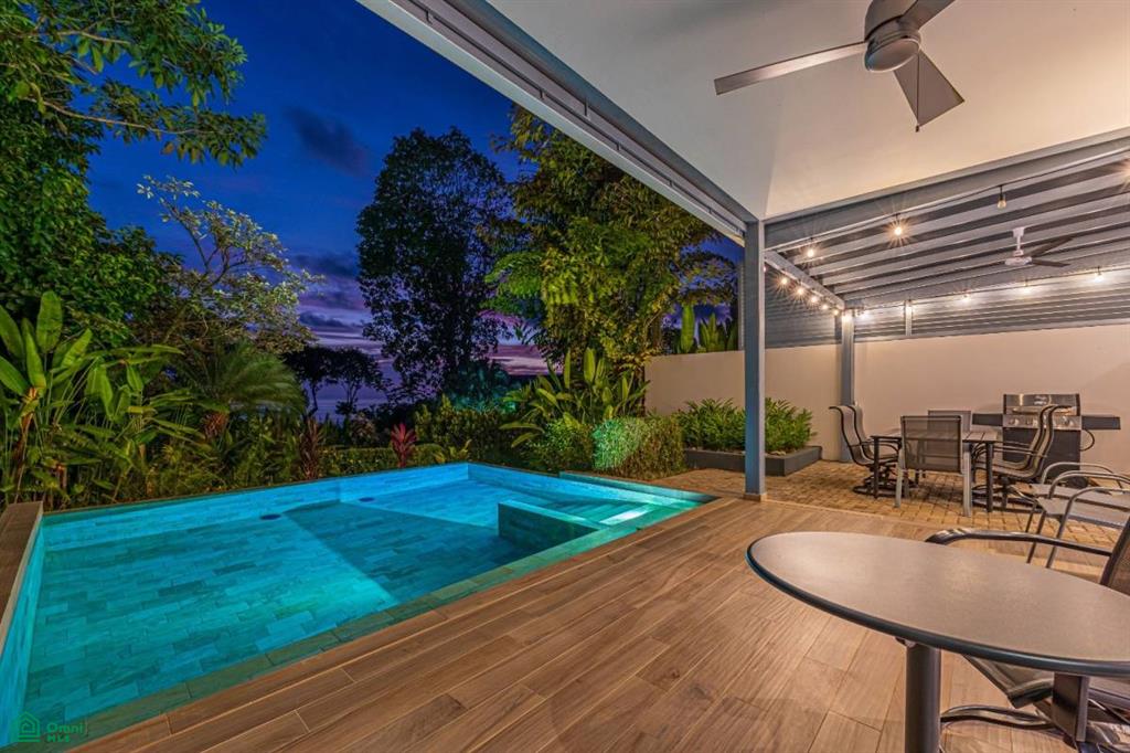 Discover this elegant, fully furnished, turn-key, 3-bedroom, 2.5-bathroom luxury villa, with two covered parking spaces, thoughtfully designed across two stories and nestled on a serene elevated terrace. Thus, the name of the condominium, The Terraces. Surrounded by lush tropical jungle, manicured gardens, and overlooking the shimmering Pacific Ocean, this private retreat offers the perfect balance of comfort, exclusivity, and natural beauty.