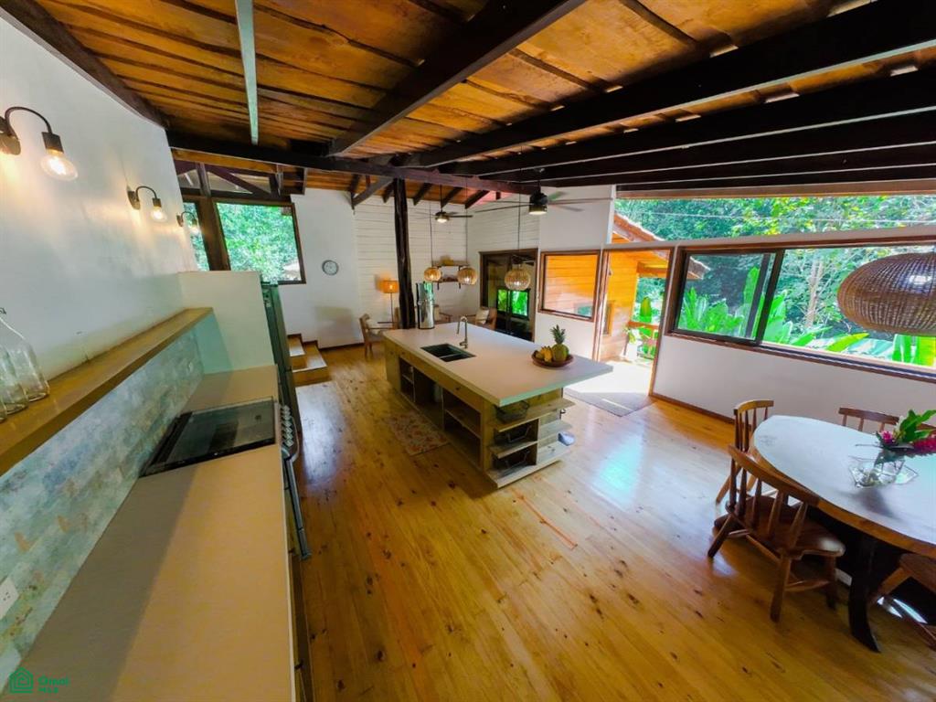 Experience the ideal balance of privacy and accessibility with this exceptional 3-bedroom property, tucked away on a private 3-acre estate in the lush rainforest of Ojochal. Surrounded by pristine nature, a flowing river, and tropical vegetation, this peaceful haven offers endless possibilities—whether as a family getaway or a boutique rental business.