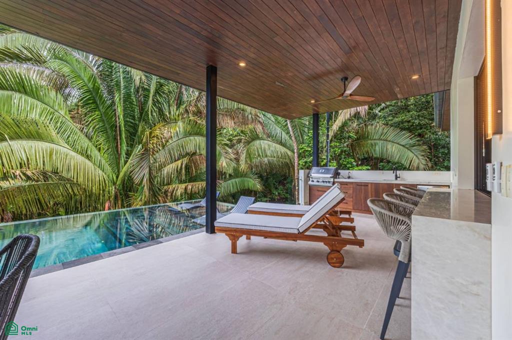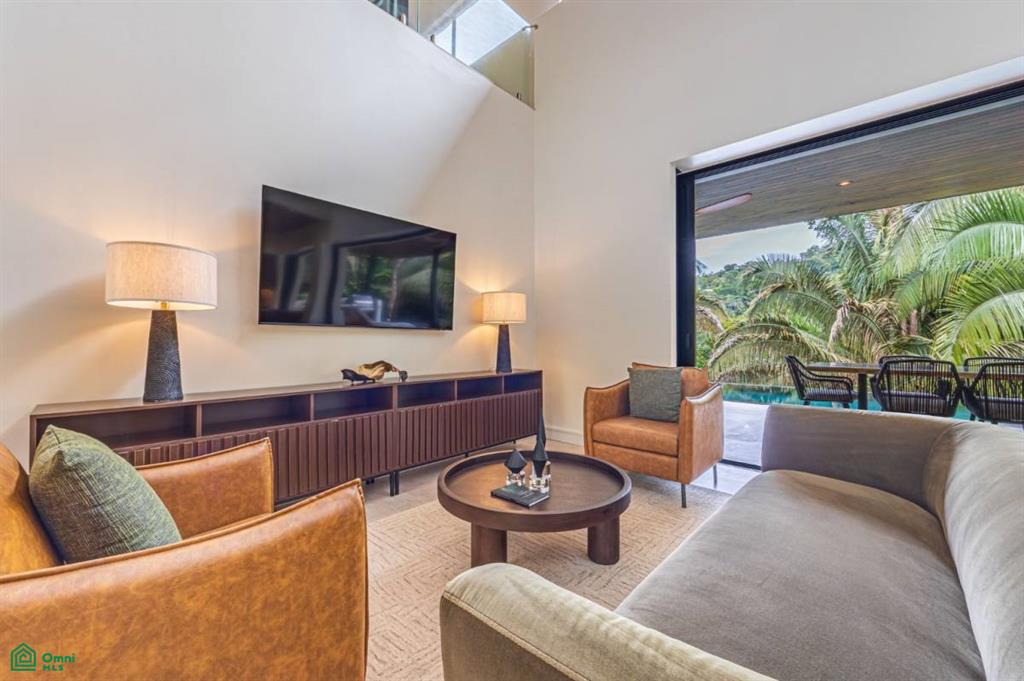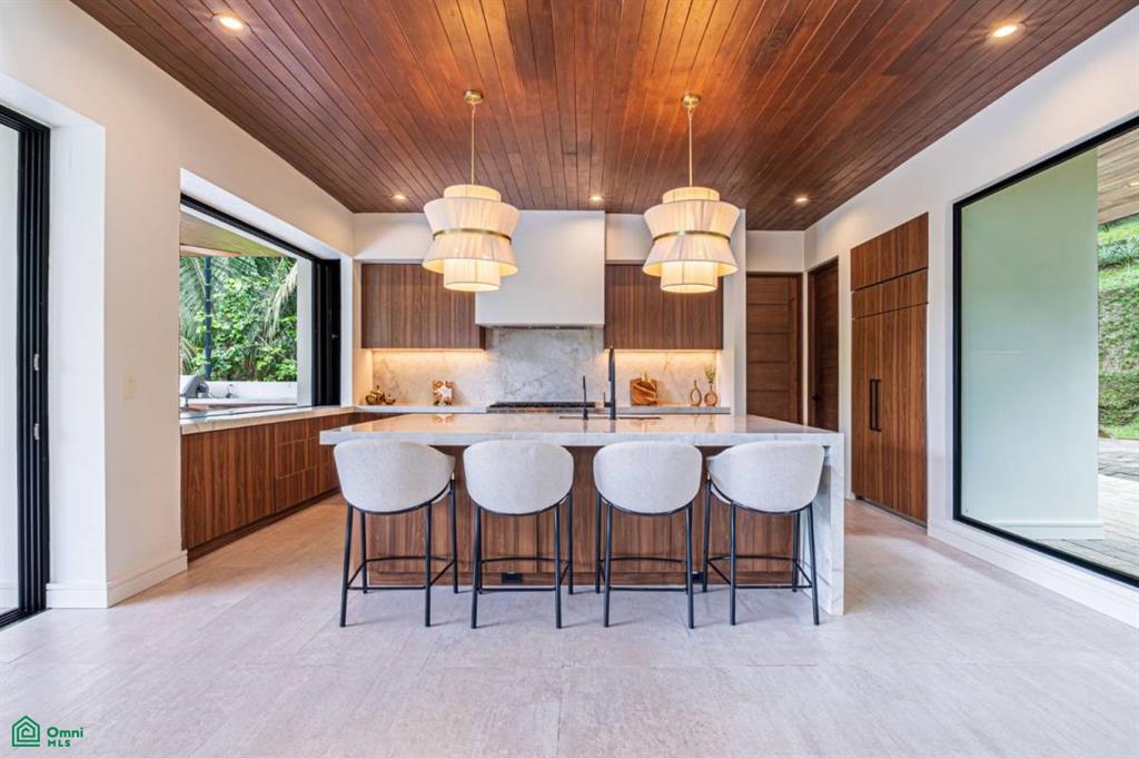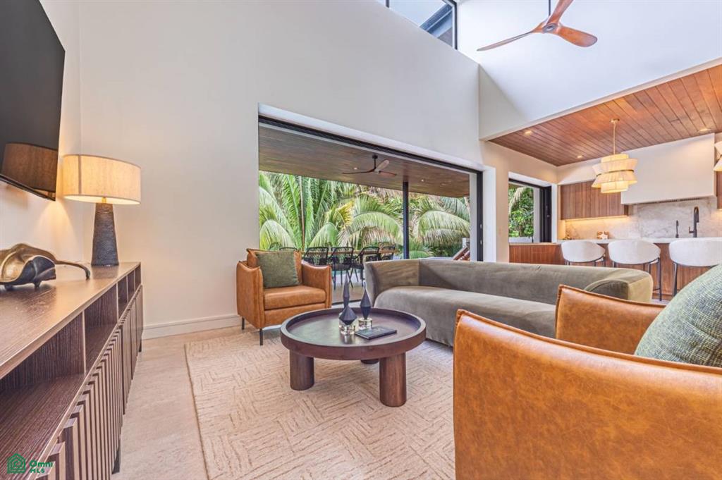 The decor throughout the home has been thoughtfully curated to create a harmonious balance between modern style and tropical influences, enhancing the overall ambiance of elegance. Additional amenities include high-speed internet, air conditioning, and top-of-the-line kitchen appliances, ensuring your coastal living experience is both luxurious a