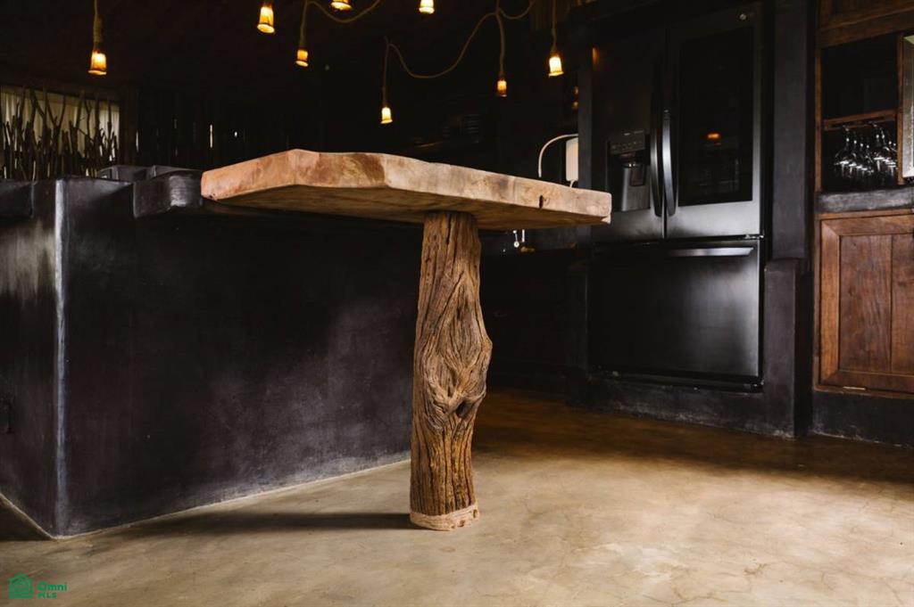 Construction: Concrete and locally harvested hardwoods; sculptural minimalist style