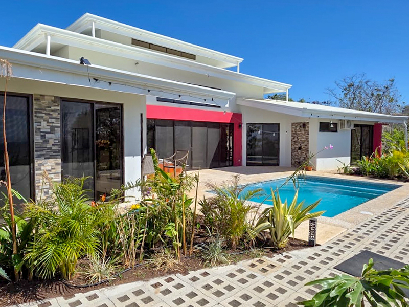 Nestled on a mountainside with spectacular ocean views toward the Nicoya Peninsula, this beautiful 3-bedroom, 2-bath modern home offers a perfect balance of style, comfort, and location. Wake up each morning to stunning sunrises over the ocean and enjoy refreshing cross breezes flowing up from the valley, keeping the home naturally cool and inviting.