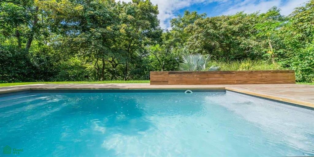 The home sits on a beautifully landscaped 2,004 m² (0.43-acre) lot, bordered by greenery and without immediate neighbors, offering rare privacy this close to the beach. The outdoor space includes a large terrace for dining and lounging, a private pool, and lush plantings that create a tranquil, resort-like atmosphere.