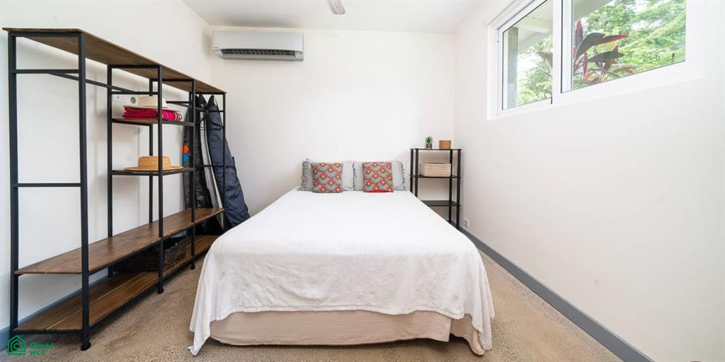 Built in 2019, Casa Surf features approximately 160 m² (1,722 sq ft) of living space, designed to embrace natural light. High ceilings and expansive windows define the interior, while glass sliding doors in both the living room and kitchen open directly onto a large terrace and sparkling pool. The kitchen offers soft grey cabinetry, quality finishes, and a two-level island that serves both as a prep space and a casual dining area. Each of the three bedrooms offers generous space and peaceful views of the surrounding garden.