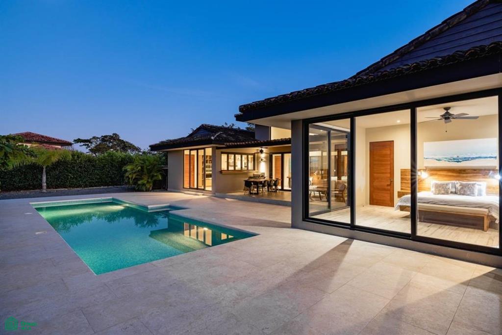The renowned design build team has created an exotic tropical design and clean contemporary aesthetic, featuring private bedroom suites with large Cedar doors throughout . The open concept kitchen, with hardwood cabinetry is covered in Quartzite stone that feels elegant but earthy. You’ll enjoy top-of-the-line Hansgrohe fittings (from Germany) to brighten up your daily routine. The kitchen seamlessly flows to the Living Room with large sliding glass doors that open to a spectacular outdoor lounge area and swimming pool surrounded by nature. Howler monkeys, ducks, deer, and exotic birds will patrol the lush vegetation in your backyard. Evenings are for entertaining as the home lights up as a magical oasis. The landscaping features low water/low maintenance design with native species, specimen trees, river rock, and crushed stone aggregates. This remarkable property is built to the highest standards. All grey work was completed