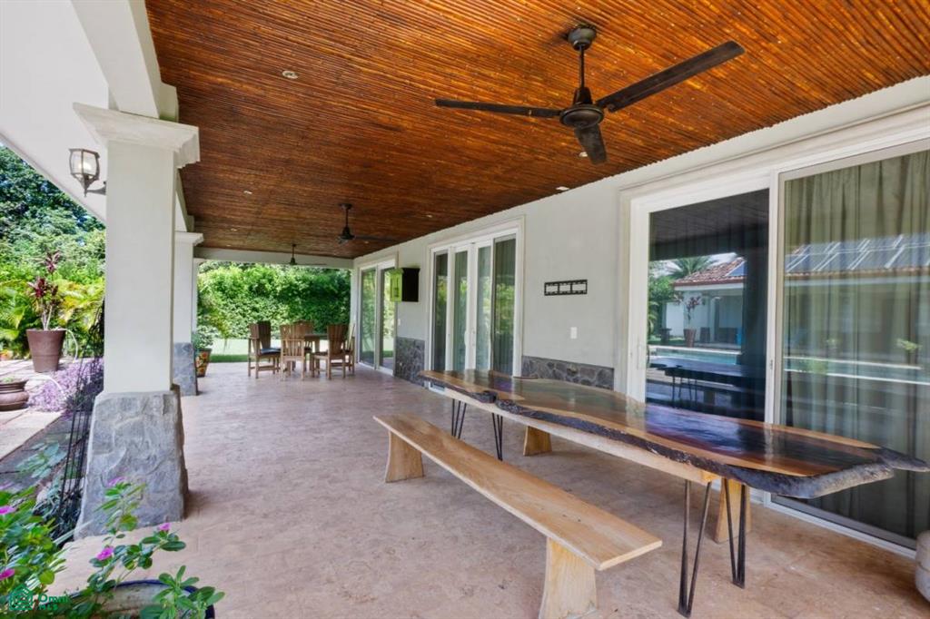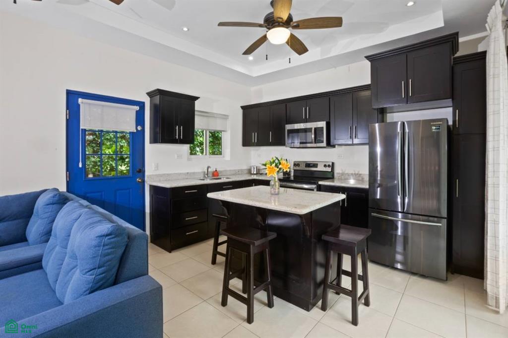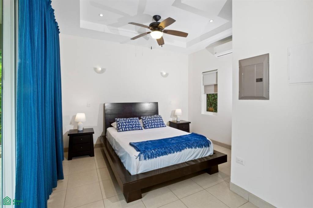 A separate 1-bed/1-bath guest house provides ultimate flexibility—ideal for visiting friends, long-term guests, or added rental income. Wander through lush tropical gardens alive with howler monkeys, colorful lizards, and exotic birds, then unwind on the spacious terrace as ocean breezes drift through. Modern comforts—such as a reserve water tank and secure 24/7 gated access—blend seamlessly with the natural surroundings to deliver effortless, serene living.