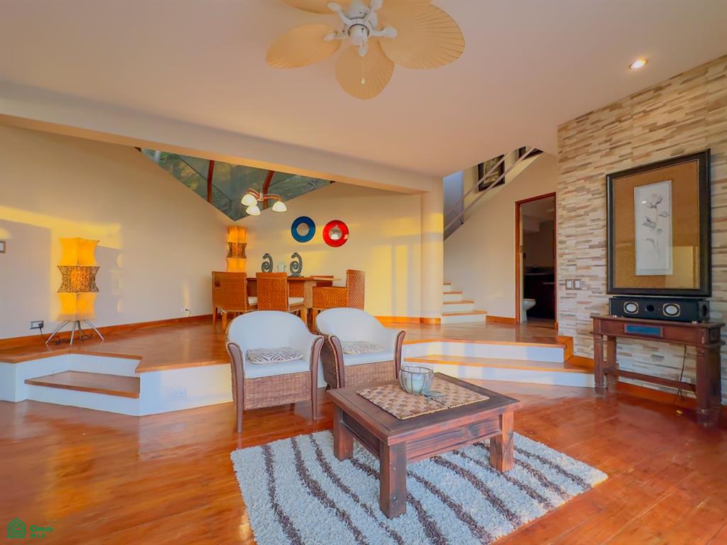 This two-level, 3-bedroom, 3.5-bath home offers approximately 2,992 sq. ft. (278 m²) of construction on a spacious 2,500 m² lot (over half an acre), tucked at the end of its own private driveway. The home's thoughtful design brings the outdoors in, with oversized windows, sliding glass doors, a kitchen-side balcony, and multiple terraces for lounging or entertaining. An elevated jacuzzi and built-in grill area complement the home’s indoor/outdoor living appeal.