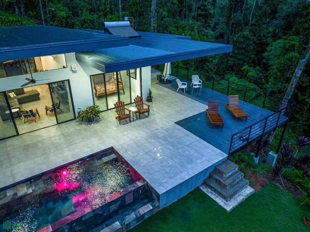Welcome to your dream home in the exclusive, gated, and guarded community of the Hills of Portalon. Nestled in its own private paradise, this stunning property boasts breathtaking ocean views stretching down the southern coastline, all surrounded by nearly 360 degrees of untouched Costa Rican jungle—a protected legal reserve teeming with vibrant wildlife like macaws, toucans, sloths, and monkeys. Below the home sits a rarity for this area, a year round creek, offering soothing sounds throughout the year.