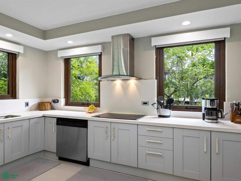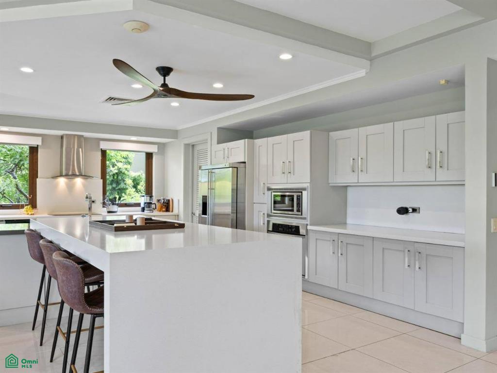 The heart of the home features a bright, open-concept layout with high-end finishes, LED lighting, and elegant custom woodwork. A newly remodeled chef’s kitchen is outfitted with top-of-the-line appliances, two sink areas, abundant cabinetry, and expansive countertops. It is ideal for culinary entertaining!
