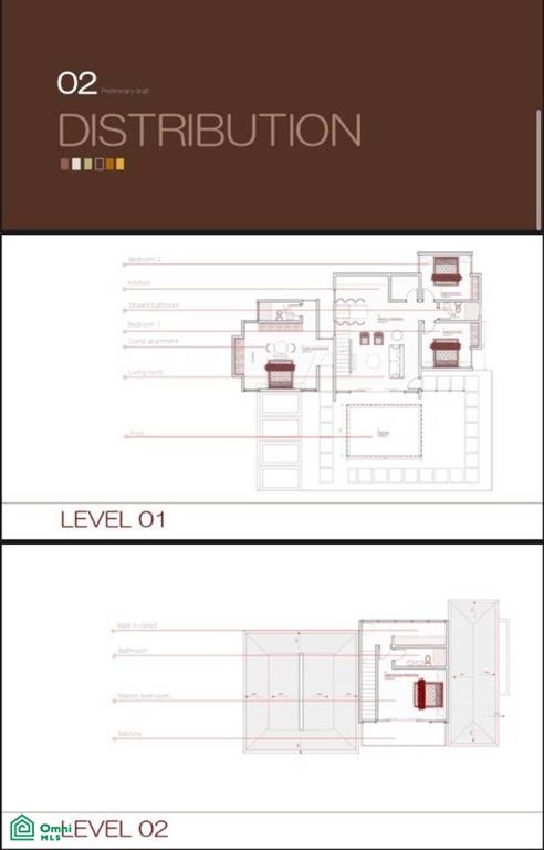 Main Access, Open space Living room and kitchen. View of the pool. Laundry next to the kitchen area. Private area with two bedrooms Downstairs with a shared bathroom. Upstairs Private area, walk-in closet with master bedroom and master bathroom. sliding doors with balcony and view to the pool. Guest apartment which is independent of the house, direct access to pool.
