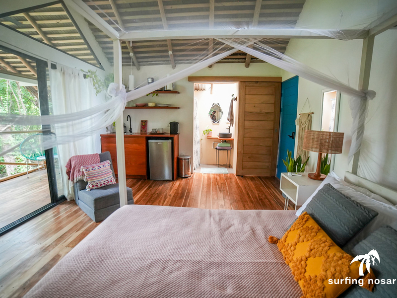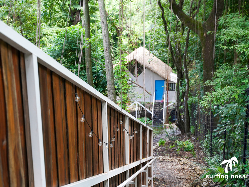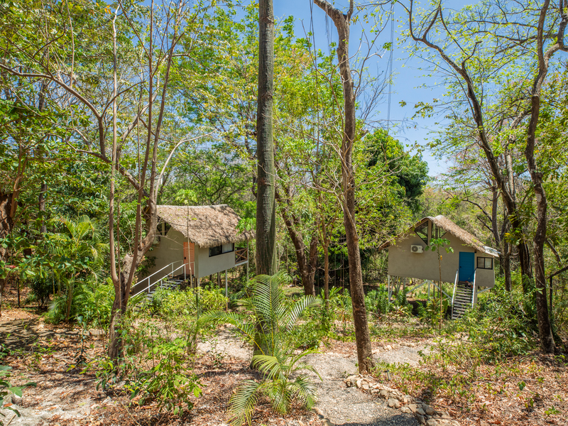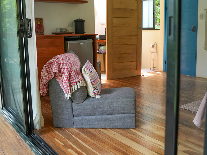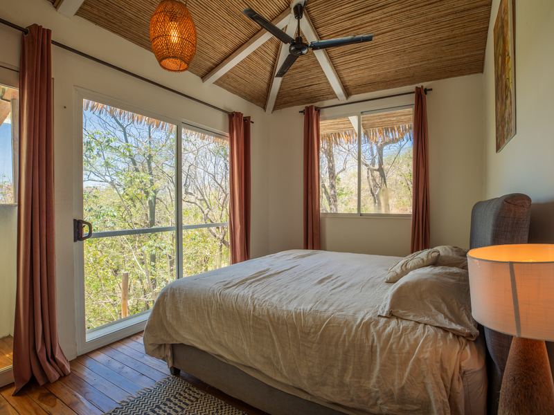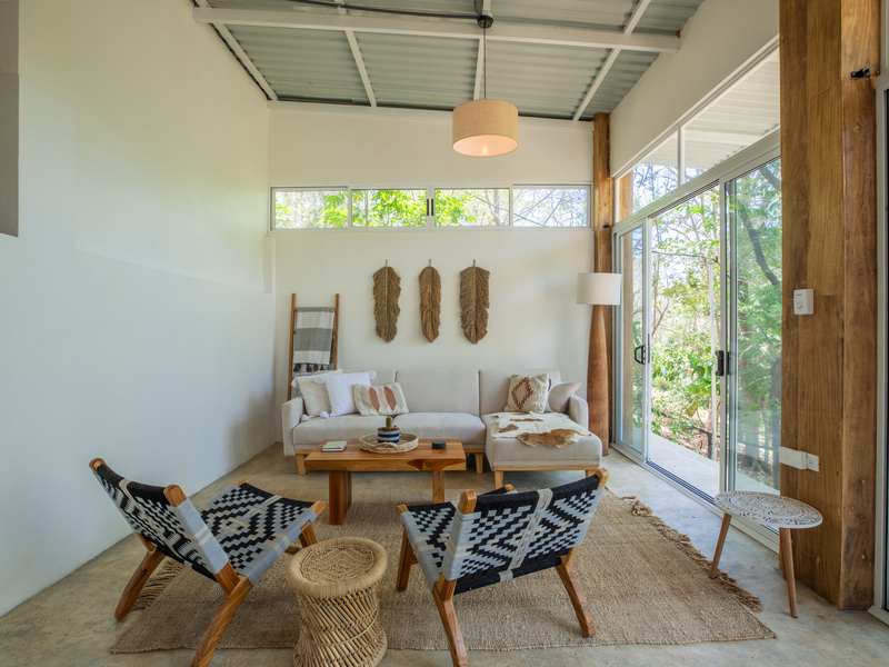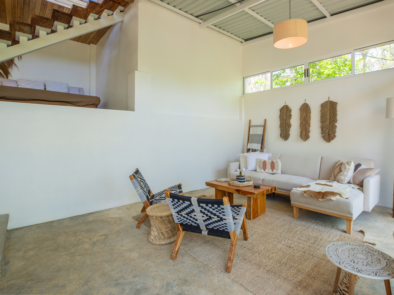Further down the property, two separate elevated studio casitas echo the same rustic modern aesthetic, offering a harmonious balance of simplicity and comfort. Each studio includes a spacious private terrace—perfect for enjoying morning coffee while immersed in the sights and sounds of the jungle, with monkeys and tropical birds moving through the protected refuge just beyond.