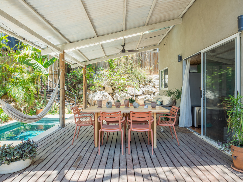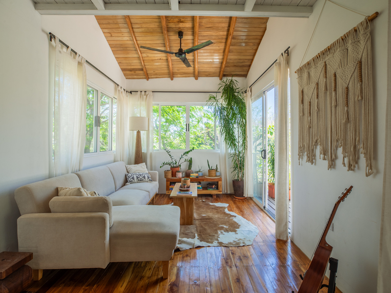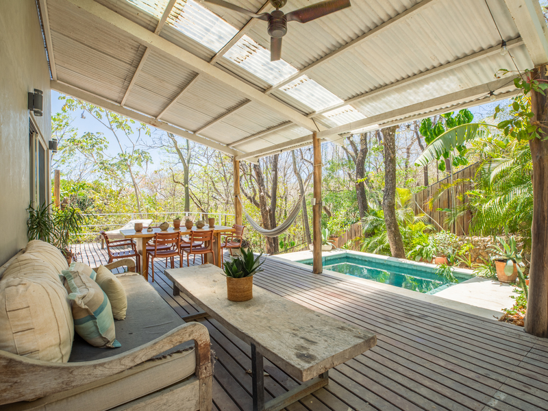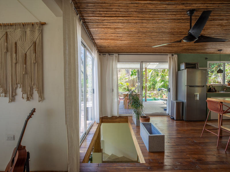 Nestled in the tranquility of Nosara and bordering a protected wildlife refuge, this exceptional rustic modern multi-unit property offers a rare blend of privacy, natural beauty, and income-producing potential—just a 10-minute walk to the beach. Perched at the top of the property, the main residence is a thoughtfully designed 2-bedroom, 2-bathroom elevated home that embodies rustic modern architecture, seamlessly blending warm natural materials with clean, contemporary lines. Expansive windows and an open layout invite in natural light and jungle views, while a large elevated deck extends into the surrounding canopy. Complete with a private pool and generous entertaining space, it’s the perfect setting for relaxing or hosting under the trees. The lower level features a versatile open-air space, ideal for yoga, fitness, or wellness retreats.