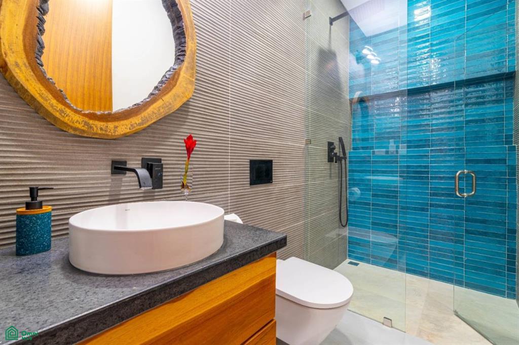 The home sits on top of the exclusive ‘Cinco Ventanas’ development, just above the jungle town of Ojochal – a perfect ‘best of both worlds’ location. Resting high above the Costanera highway and local villages, this end-of-the-road house is surrounded by uninhabited stretches of jungle on three of its sides – giving a feeling of peaceful seclusion & isolation. But all modern-day conveniences are just a short, 10-minute drive away – as the nearby Costanera, being the only Pacific-coast highway, is a haven for services and amenities of any and all kinds.