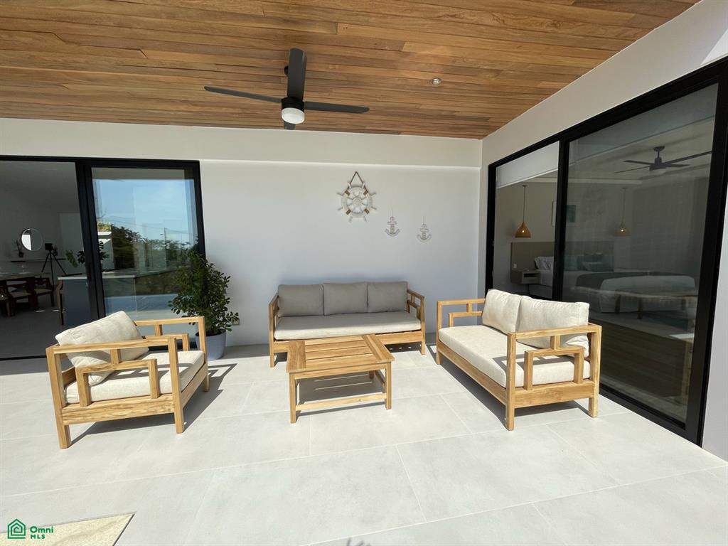 Outside, the large terrace with its custom-built Guanacaste wood seating and built-in grill offers a serene retreat, ideal for entertaining or