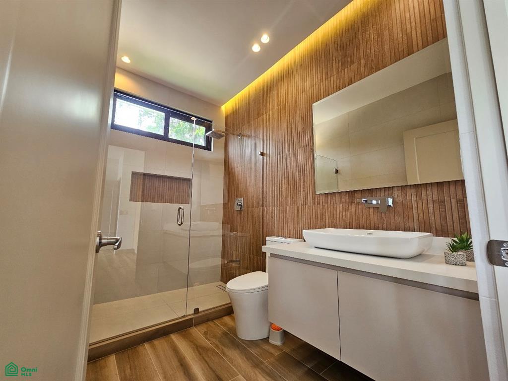 The fully-equipped gourmet kitchen is a chef's dream, featuring top-of-the-line appliances, a double-door refrigerator, and a large quartz island that provides ample space for culinary adventures. Adjacent to the kitchen, a spacious laundry area offers generous storage and top-tier amenities, ensuring functional living.