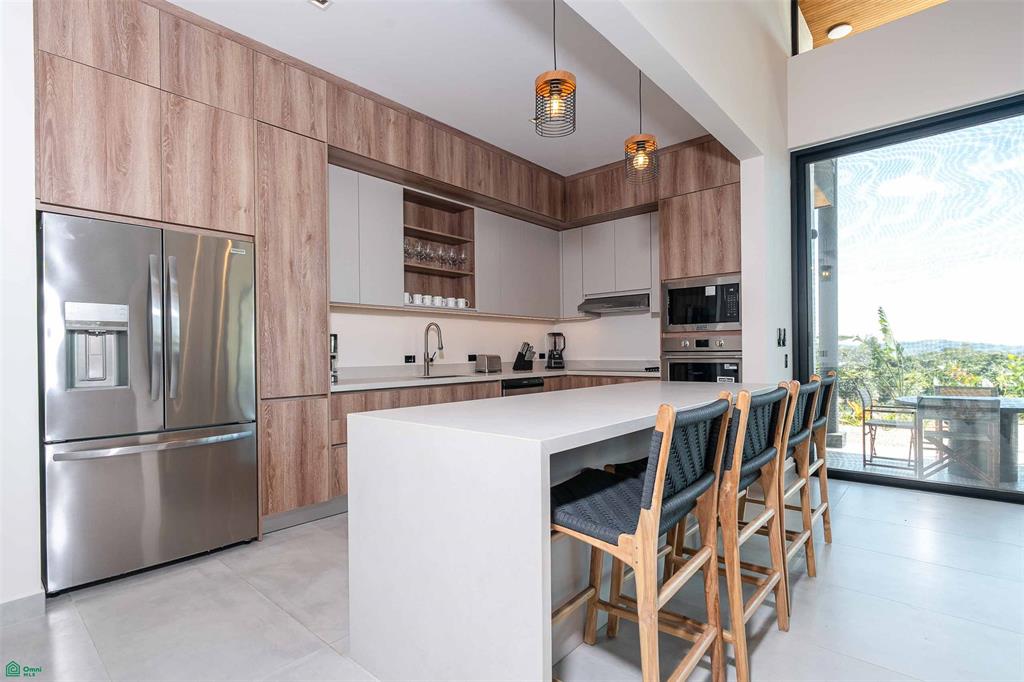 This elegant home features 4 spacious bedrooms and 4.5 designer bathrooms, thoughtfully crafted with high-end finishes and attention to detail throughout. Soaring ceilings and floor-to-ceiling glass walls flood the interiors with natural light while framing lush jungle surroundings and ocean vistas. The open-concept living and gourmet kitchen areas create a seamless indoor–outdoor flow, ideal for entertaining or relaxed everyday living in Costa Rica.