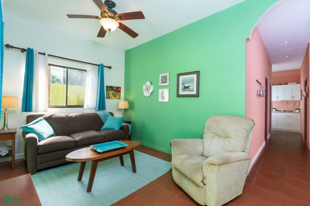 The property features a flexible multi-unit layout arranged around a shared swimming pool in a tropical setting. It includes a main residence with two bedrooms and one bathroom of approximately 1,500 square feet, along with two independent casitas, each offering one bedroom and one bathroom of approximately 800 square feet. In total, the property provides four bedrooms and three bathrooms, allowing owners to occupy one residence while generating income from the additional units.